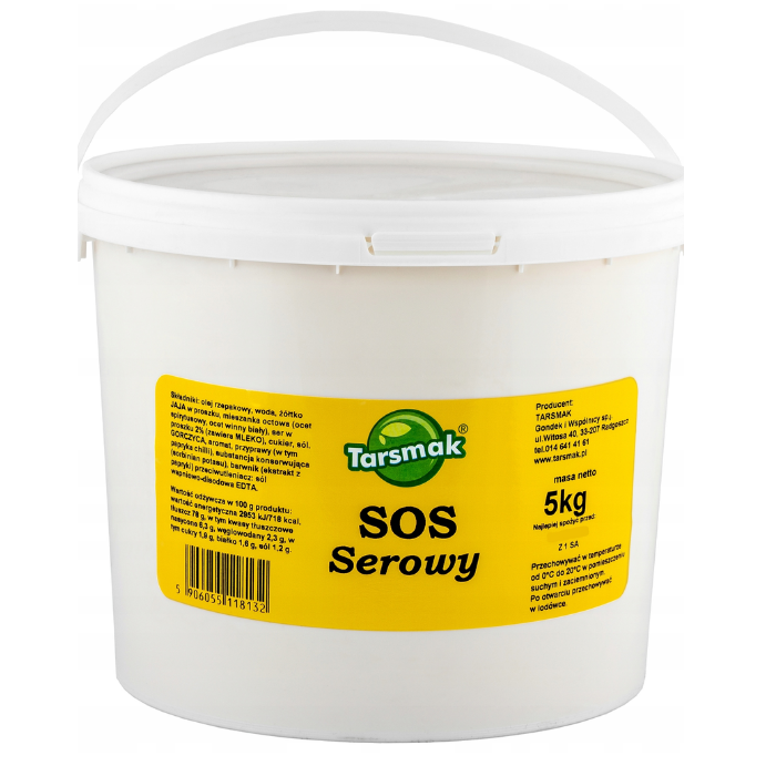 Skład: olej rzepakowy, woda, żółtko JAJA w proszku, mieszanka octowa (ocet spirytusowy, ocet winny biały), ser w proszku 2% (zawiera MLEKO), cukier, sól, GORCZYCA, przyprawy (w tym papryka chilli), aromat (w tym glukoza, sól,ekstrakt drożdzowy), substancja konserwująca (sorbinian potasu), barwnik (ekstrakt z papryki) przeciwutleniacz (sól wapniowo-disodowa EDTA).